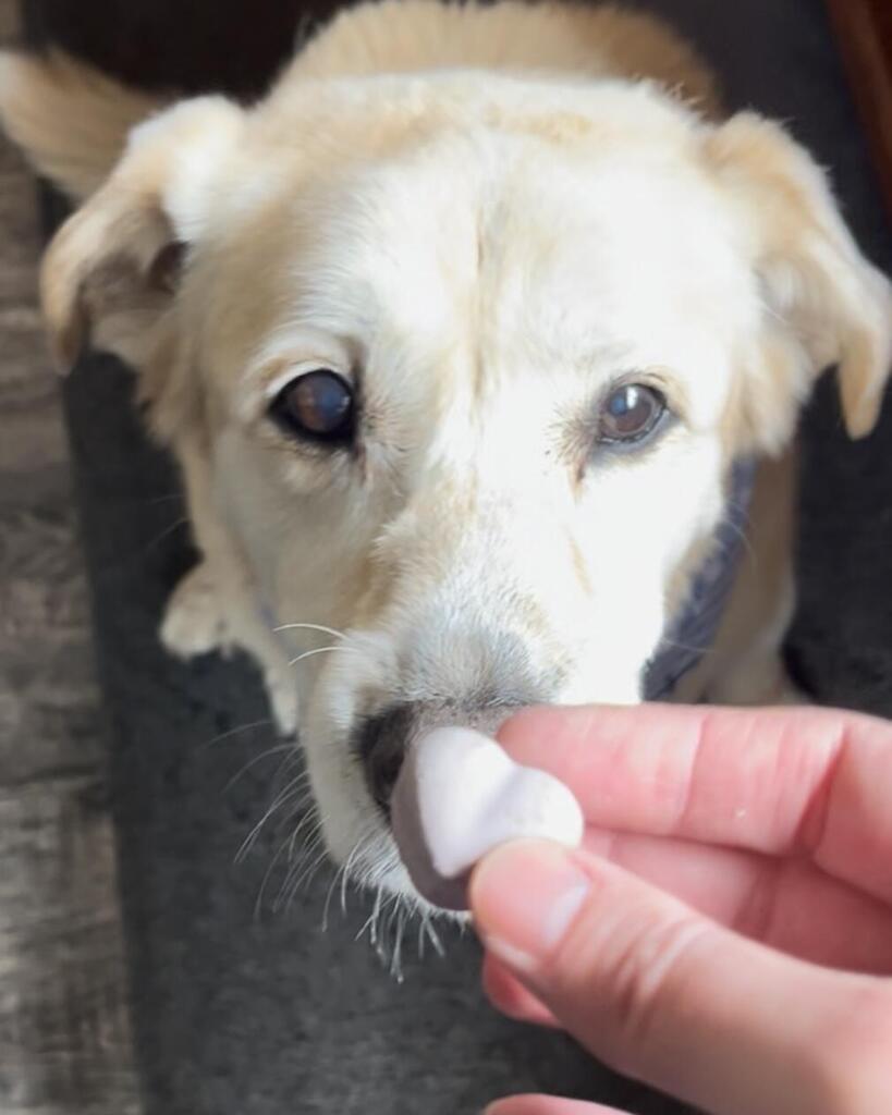 My dog Bella is very picky. She will spit out anything she doesn't like. She's 14 and needs different medicine every morning and night and always gets a treat when she takes it. She really likes these as they are easy to eat and this morning she didn't settle for just one piece, she wanted a second. So Bella gives these 2 paws up!!! My dog Bella is very picky. She will spit out anything she doesn't like. She's 14 and needs different medicine every morning and night and always gets a treat when she takes it. She really... My dog Bella is very picky. She will spit out anything she doesn't like. She's 14 and needs different medicine every morning and night and always gets a treat when she takes it. She really likes these as they are easy to eat and this morning she didn't settle for just one piece, she wanted a second. So Bella gives these 2 paws up!!!