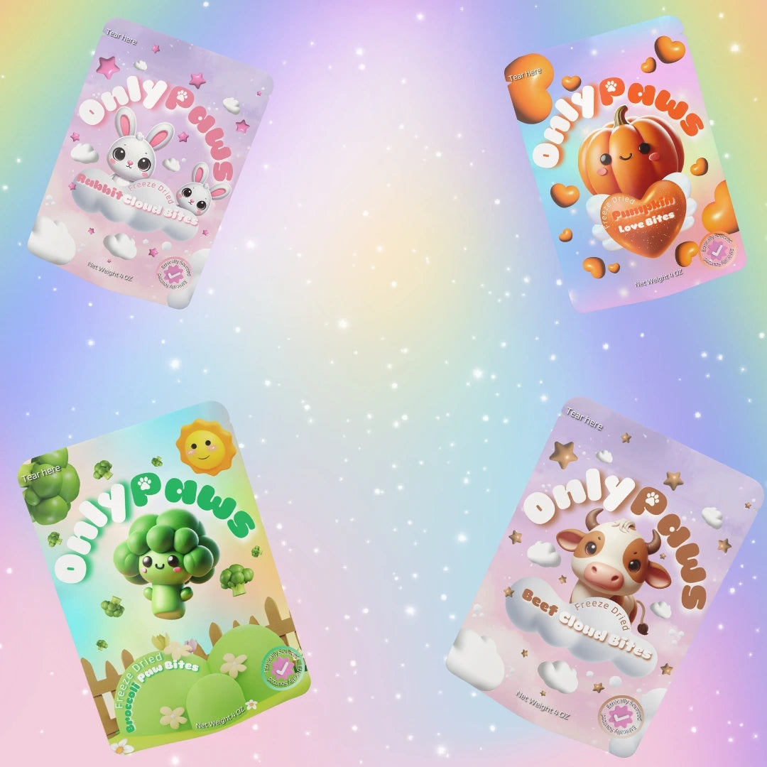 The freeze dried carrot paw bites are adorable because they are shaped like paws. My beagle is senior dog and since she is missing a few teeth I had to help her out with it. I break them in half for her now so isn't struggling to pick it up. Overall she likes the taste! They're packaged in a sealed ziplocked bag which is perfect for storage as long as it's kept in a cool place. I recommend to any fur baby. The freeze dried carrot paw bites are adorable because they are shaped like paws. My beagle is senior dog and since she is missing a few teeth I had to help her out with it.... The freeze dried carrot paw bites are adorable because they are shaped like paws. My beagle is senior dog and since she is missing a few teeth I had to help her out with it. I break them in half for her now so isn't struggling to pick it up. Overall she likes the taste! They're packaged in a sealed ziplocked bag which is perfect for storage as long as it's kept in a cool place. I recommend to any fur baby.